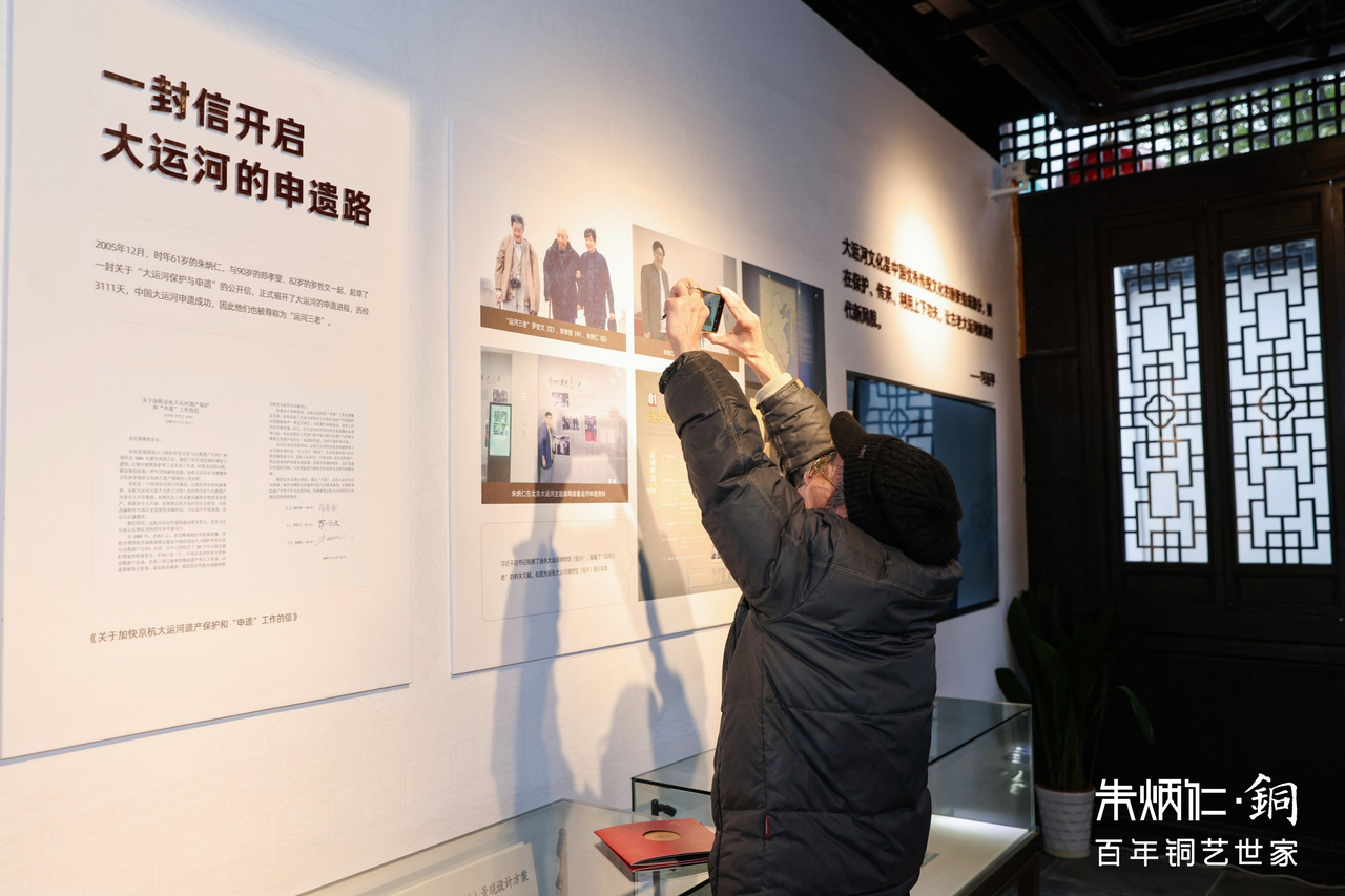 观众在朱炳仁大运河艺术馆拍摄珍贵的大运河申遗信原稿